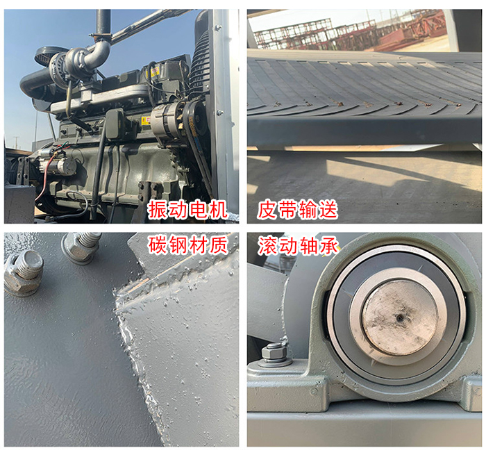 平板振動篩沙機的結構是由架子,減速機,傳送帶,轉篩,發動機或電機等部件組成的。